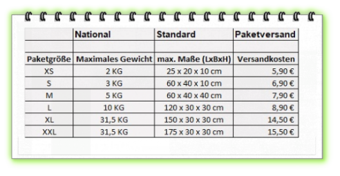 Alle Pakete sind bis 520€ versichert, Höherversicherung durch Zuzahlung möglich